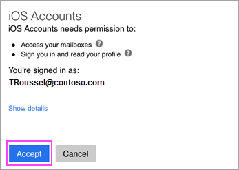The Mail app may request certain permissions. Tap Accept.